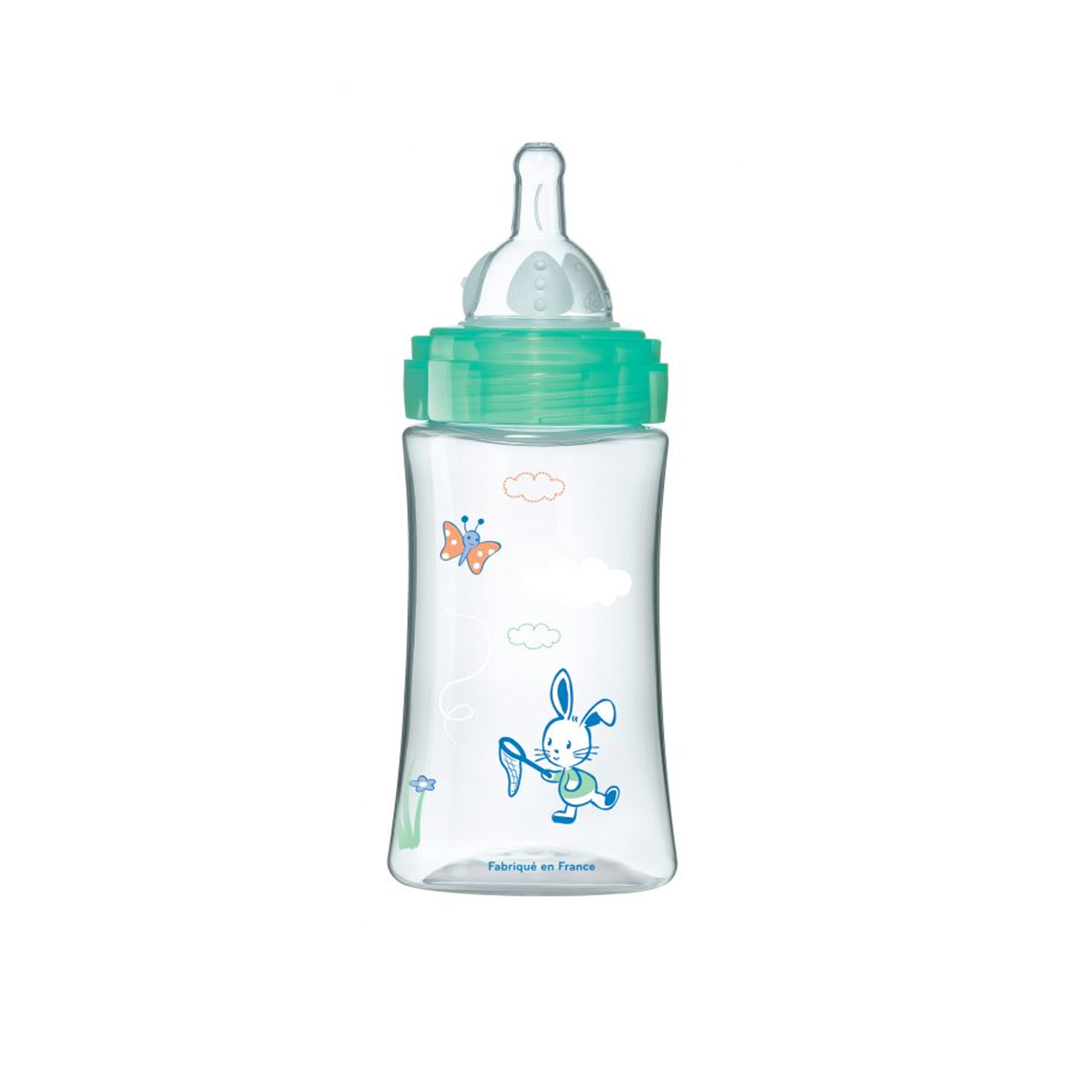 Sensation+ anti-colic bottle 270 ml for babies aged 0 to 6 months, flat teat, and slow flow. Colour: Air Green